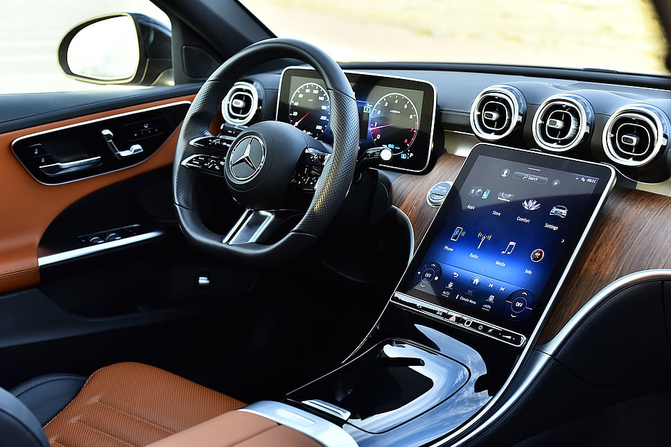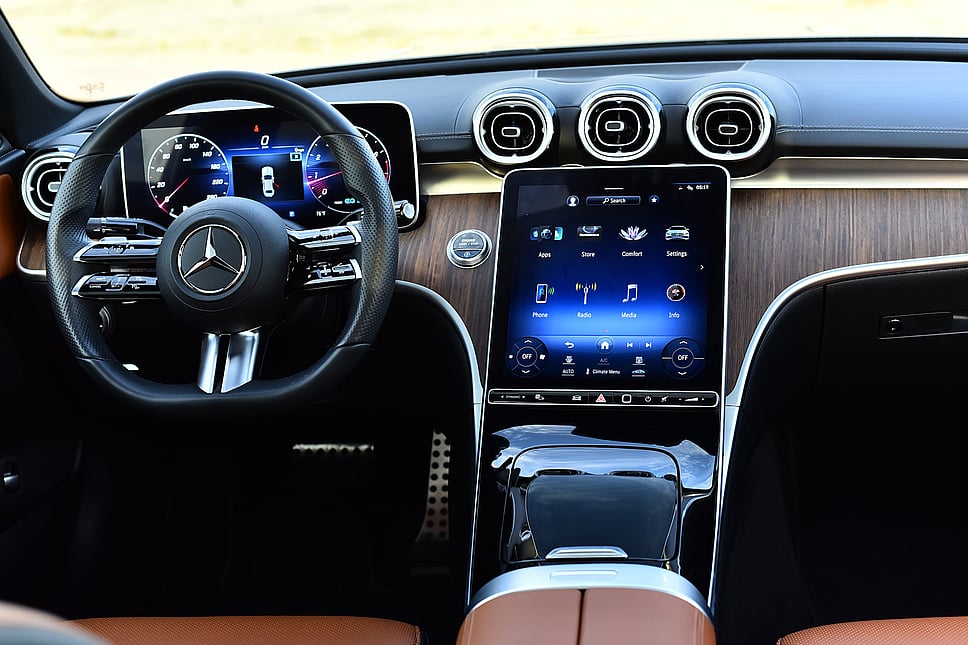 The C300 has a lot of room that fits five people comfortably, with space for everyone. The trunk is wide for luggage. The car also has many small storage spaces.